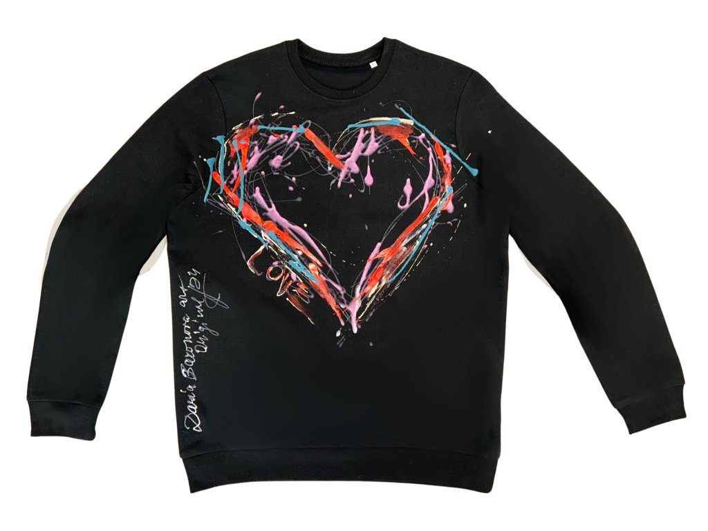 Příjemná tenká bavlněná mikina s ručně malovaným srdcem a nápisem láska