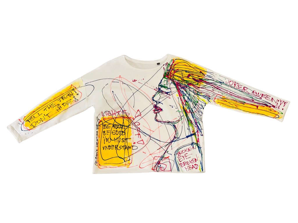 Úžasná měkkoučká celoroční mikina s ruční malbou na téma šašek a královna