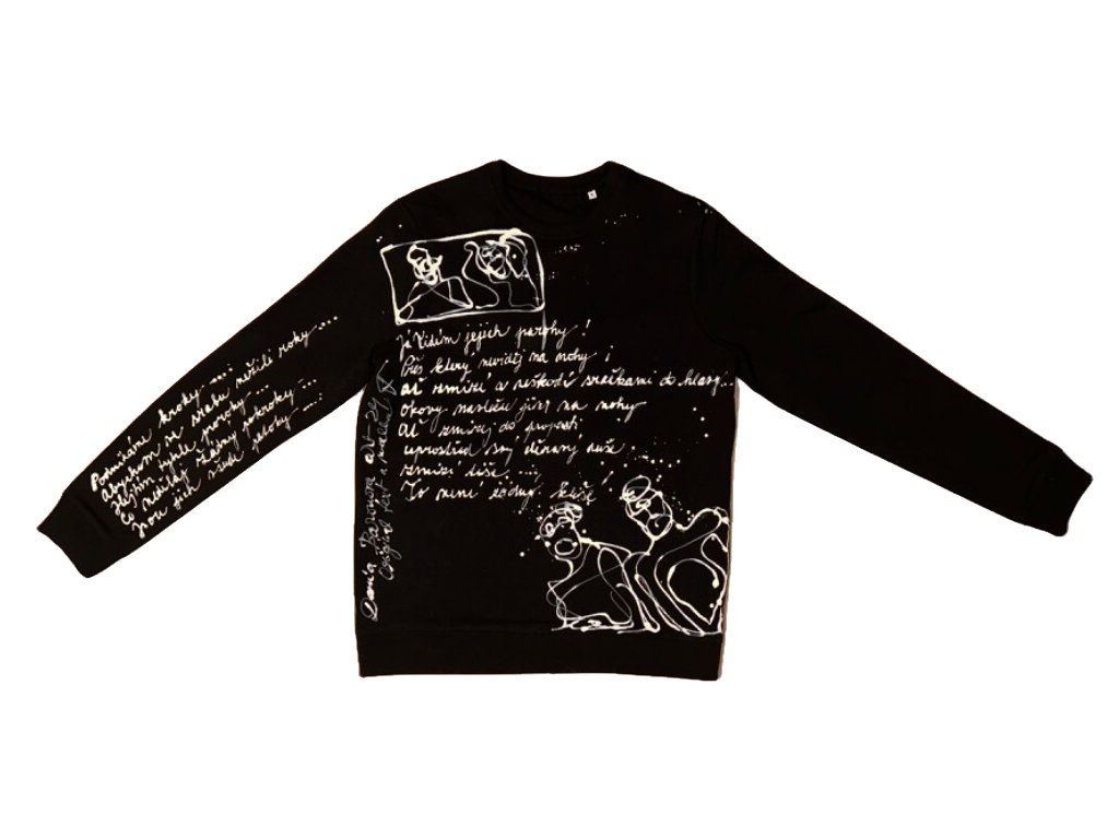 Dámská černá bavlněná mikina s malbou a textem na téma životní kroky...