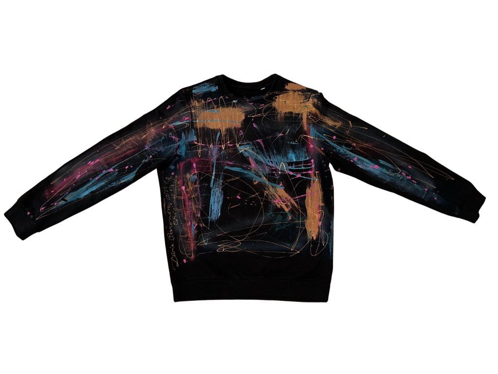 Příjemná černá mikina s ruční malbou a několika odstíny zlaté vás přenese do světa luxusu
