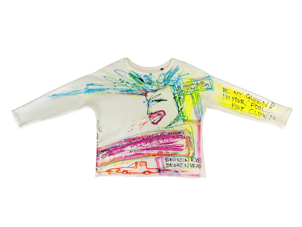 S ruční malbou na téma klaun, kde byla inspirací divadelní hra - Šašek a královna